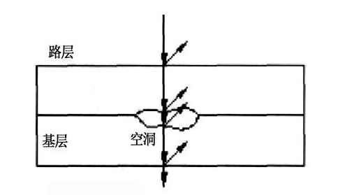 與以往的公路施工相比,現(xiàn)階段的施工更為復(fù)雜,道路的總體質(zhì)量與路面的施工品質(zhì)息息相關(guān)。路面因尚存的不同干擾因素而問題不斷,例如面層破損以及基層縫隙等。路面結(jié)構(gòu)也會(huì)隨著問題的出現(xiàn)而發(fā)生改變,最終改變結(jié)構(gòu)與結(jié)構(gòu)之間的布局情況。以此為背景,當(dāng)對(duì)比正常區(qū)域的路面與雷達(dá)所釋放的電磁波時(shí),問題便很容易顯示在剖面圖之上,如圖1所示。