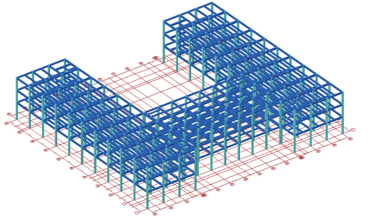 2#廠房為整體現澆框架結構,基礎為獨立基礎。建筑結構的安全等級為二級,結構重要性系數為1.0。設計使用年限為50年,至今已投入使用10余年。抗震設防烈度為7度,設計基本地震加速度為0.10g,設計地震分組為第一組,建筑抗震設防類別為丙類建筑,框架抗震設防等級為三級。建筑外墻采用多孔磚;內墻采用容重≤7kN/m³的加氣混凝土砌塊。建筑總高度為21.07m。經勘察,該建筑結構與圖紙相符,無明顯結構性變動。
